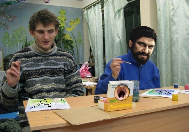Леониде обучает Кудряшку мастерству писания золотых псто!
